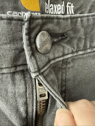 Carhartt 102291 Rugged Flex Rigby Relaxed Fit Pant in washed black that presents as grey. Tag size 32 x 32 but these have been washed and the inseam now measures 30?. This is common for the brand. 8-ounce, 98% cotton/2% spandex canvas