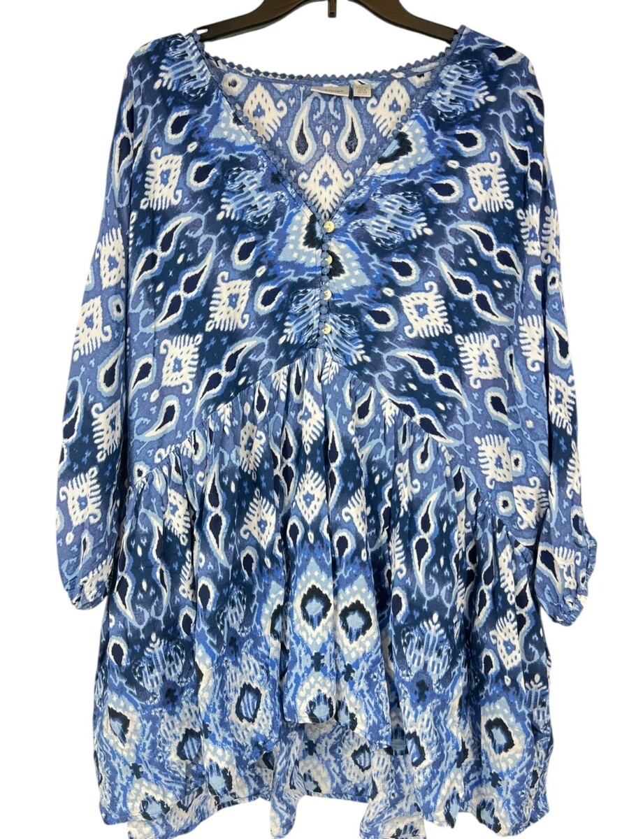 Avenue Womens Blue & White Boho Tunic Top and 50 similar items