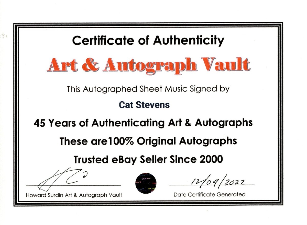 Cat Stevens Signed Sheet Music Museum Framed and similar items