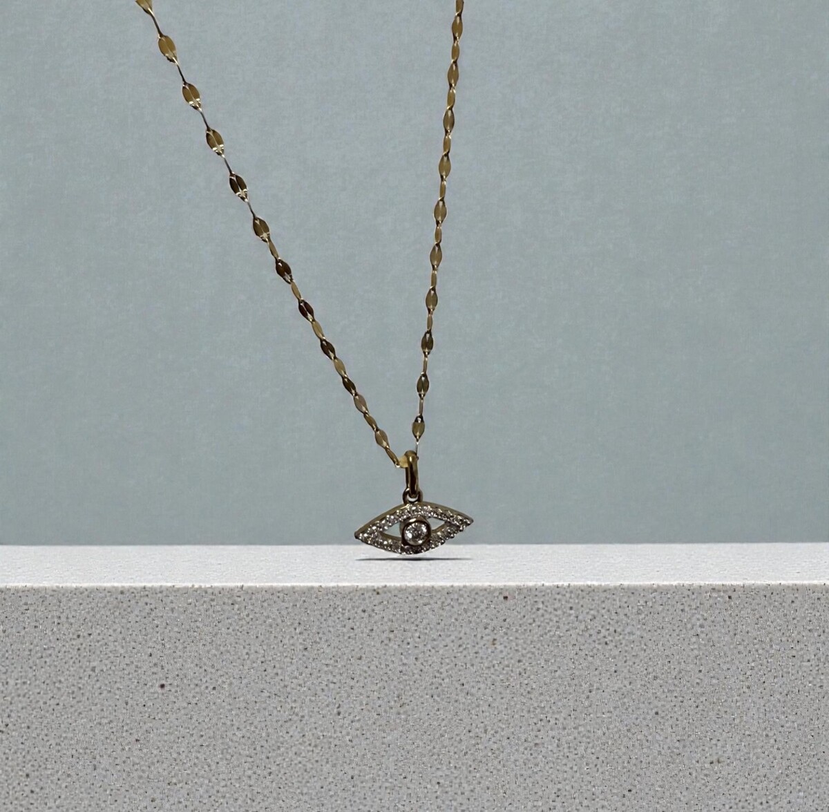 10K Yellow Gold Lab Grown Round Diamond Evil Eye Pendant Necklace 18"