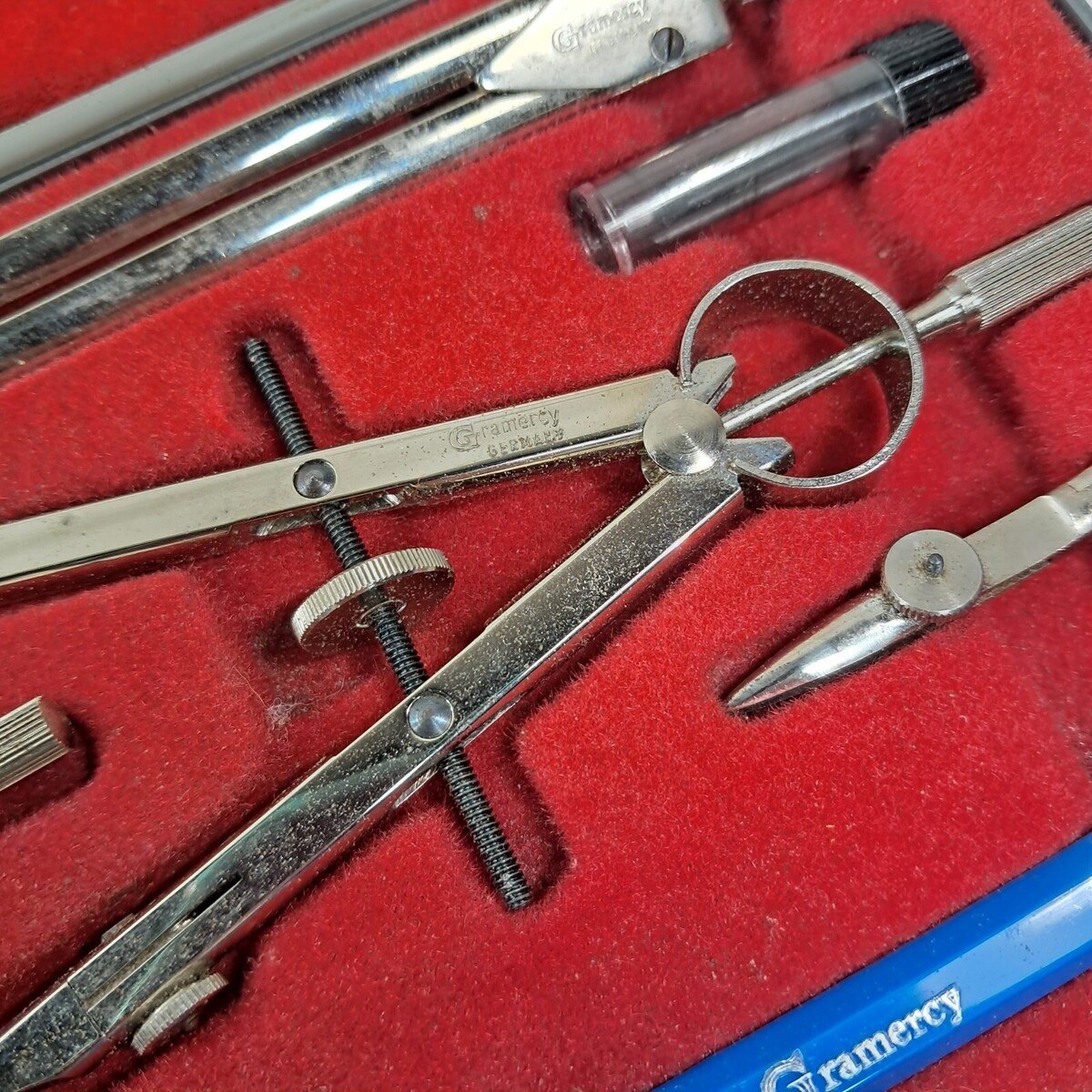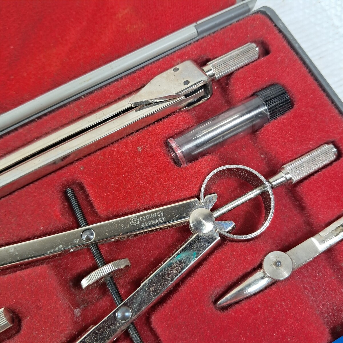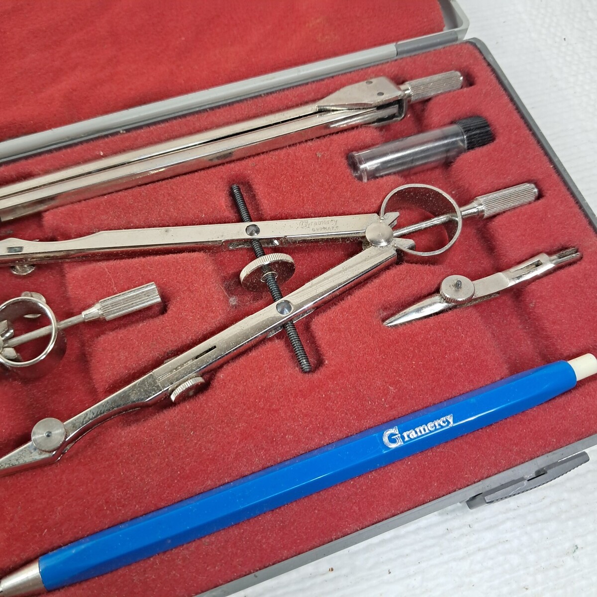 Vintage Gramercy drafting PO7 metal compass tool set kit made in Germany w/ case