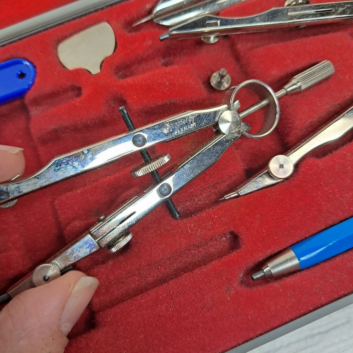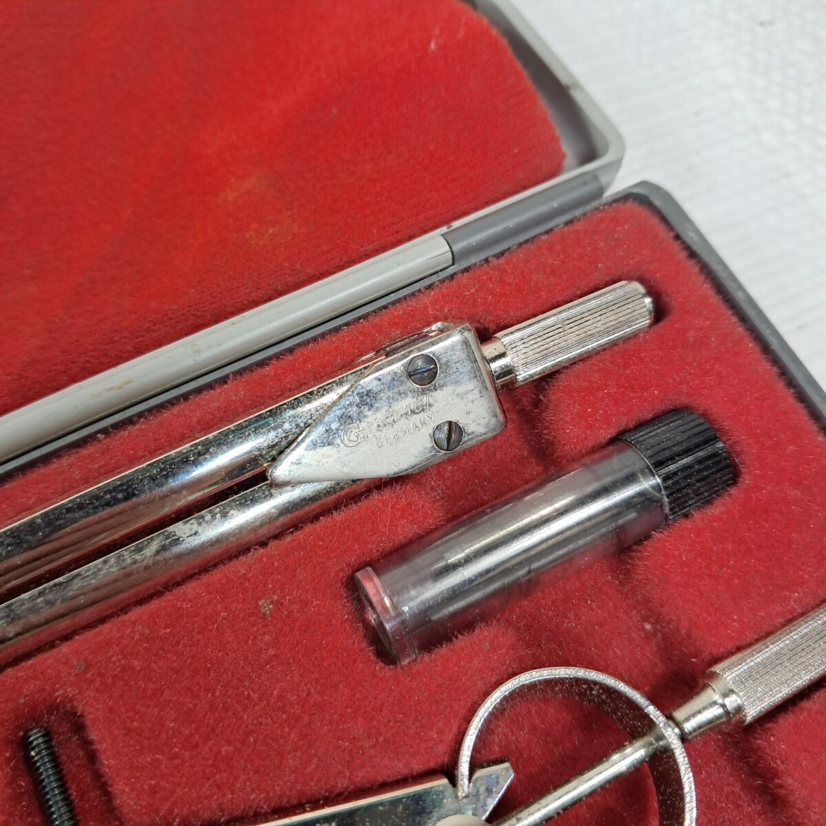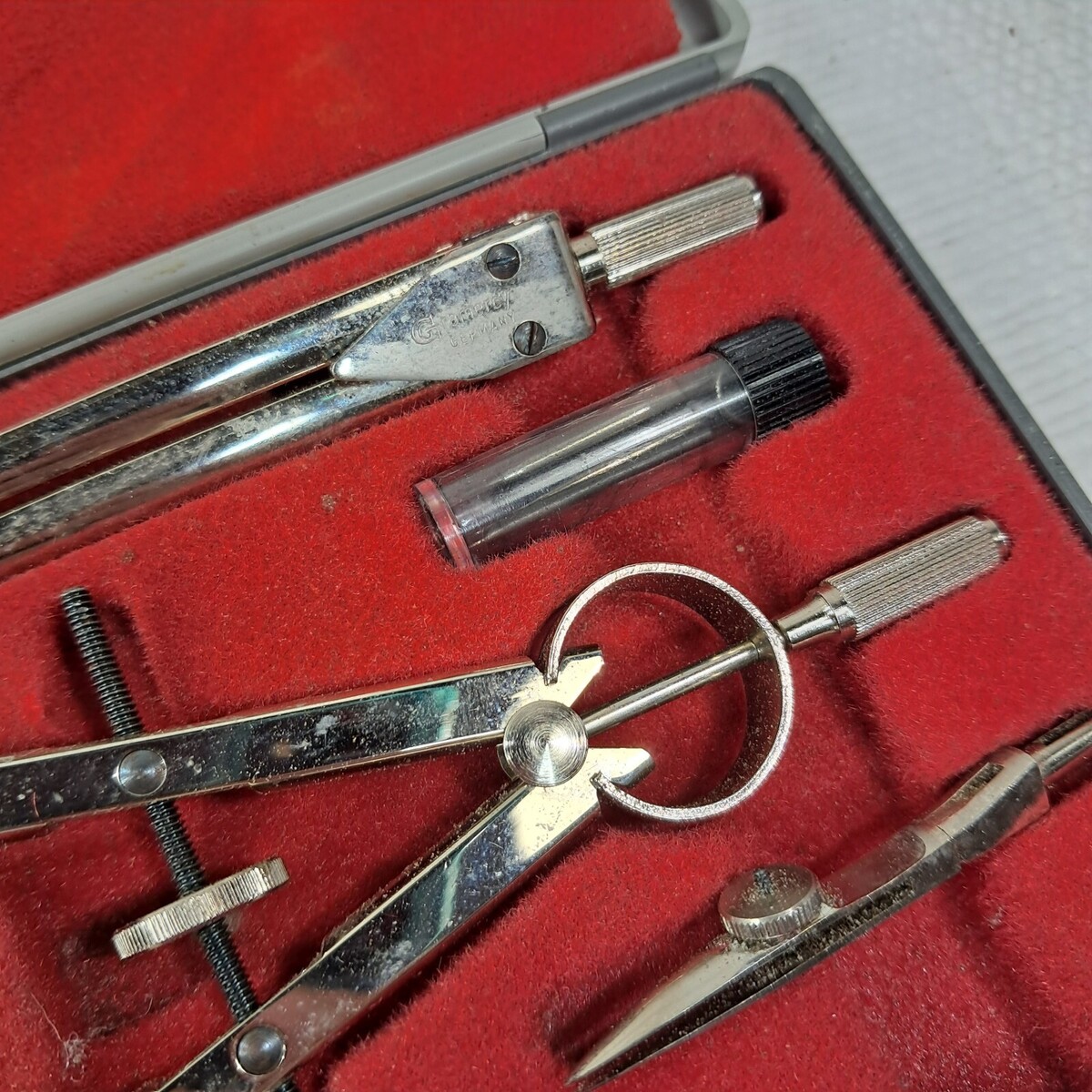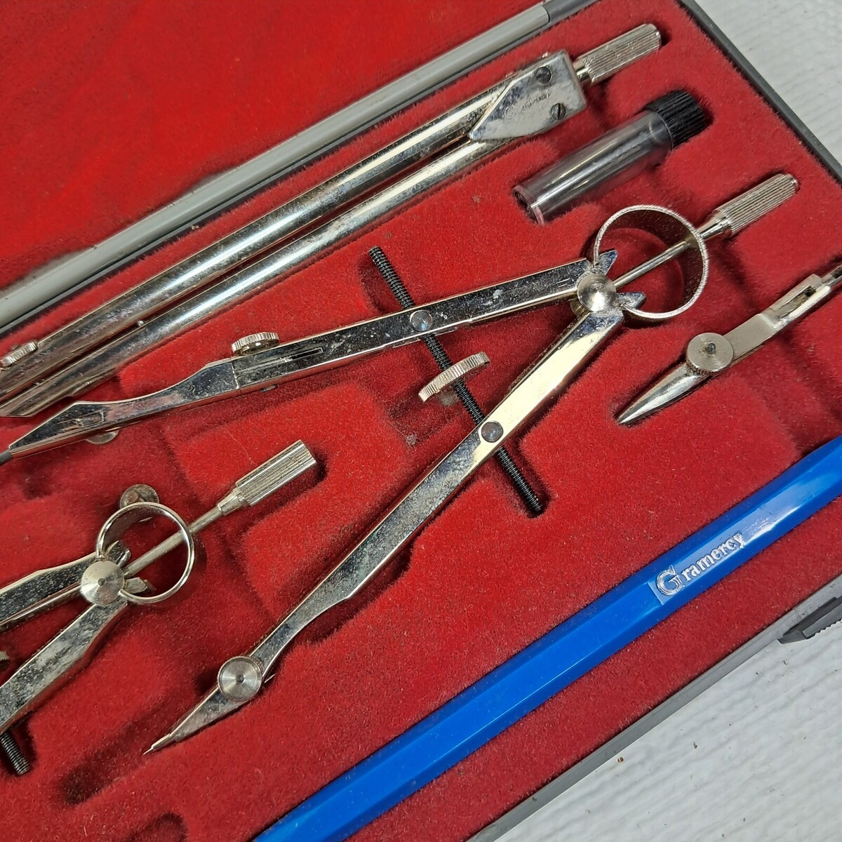 Vintage Gramercy drafting PO7 metal compass tool set kit made in Germany w/ case