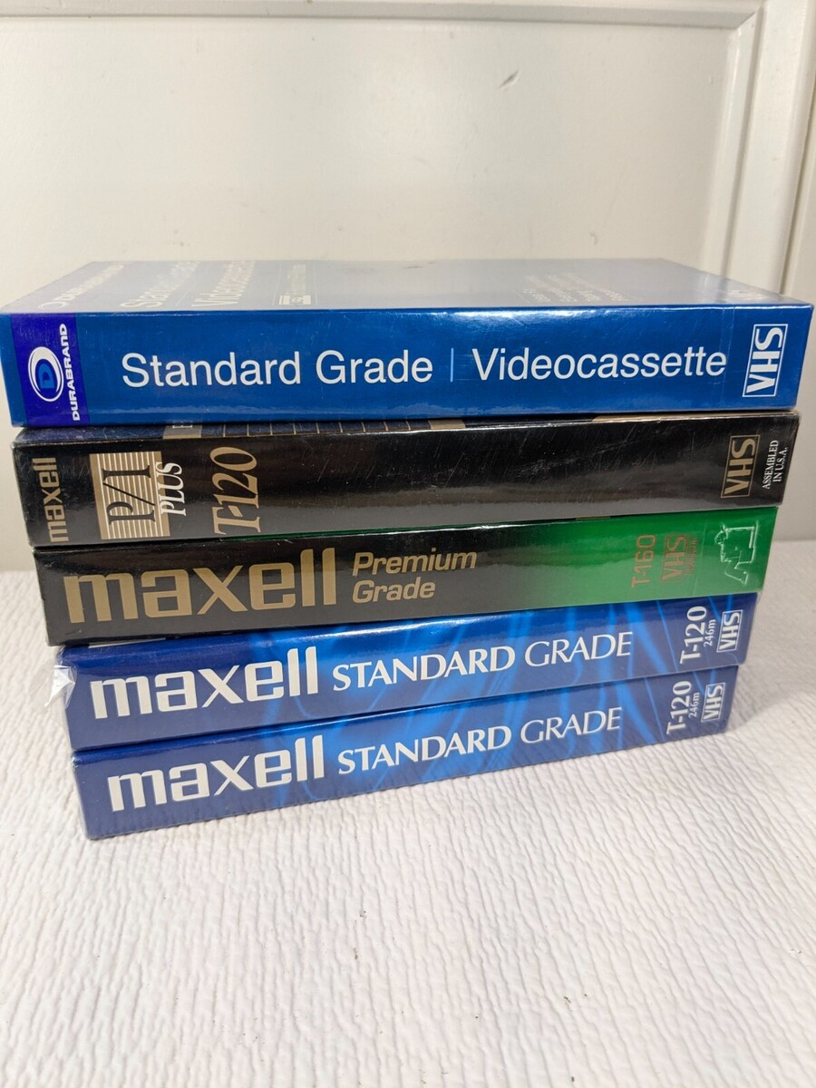 Set 5 blank VHS cassette tapes recordable Maxell P/I Plus T-120 Premium T-160