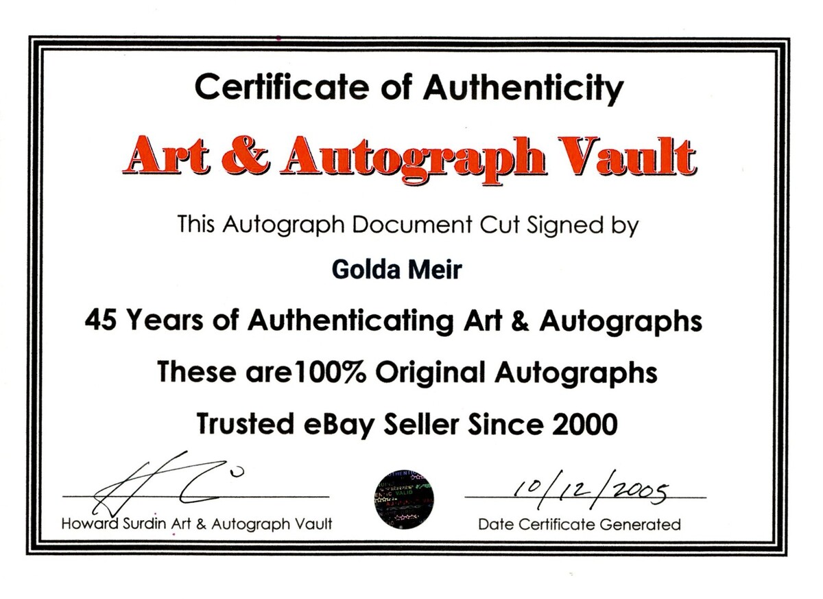 Golda Meir Signature Document Cut
