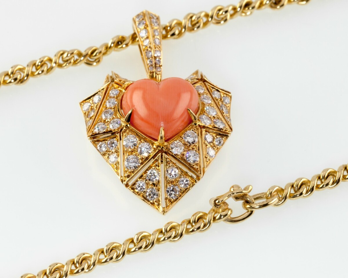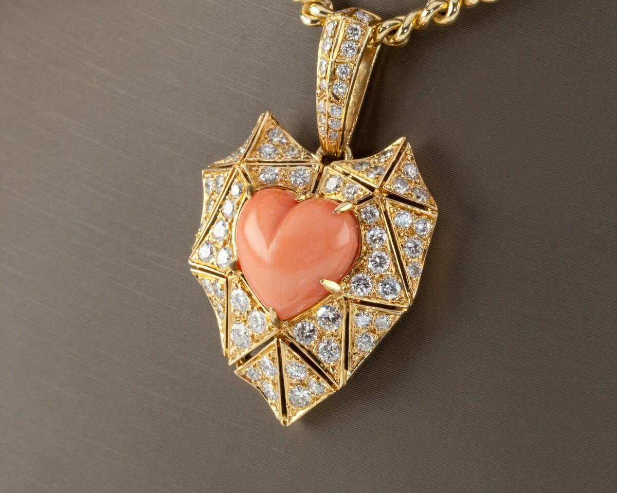 Bulgari Bvlgari High Jewelry 18k Yellow Gold Diamond and Coral Heart Pendant