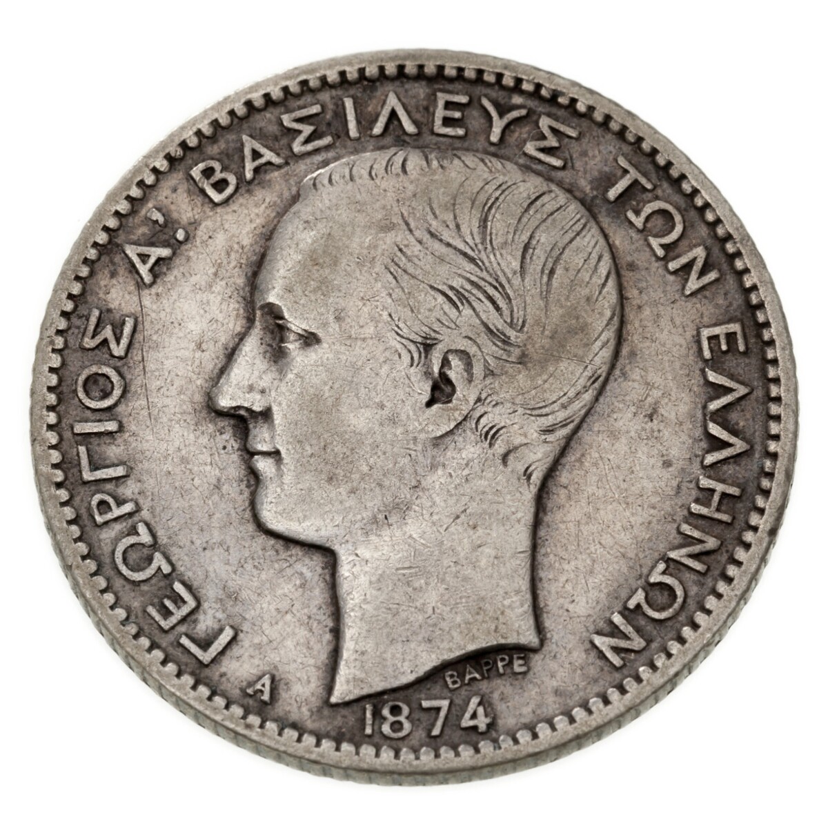 1874 Greece Drachma Coin in VF Condition KM# 38