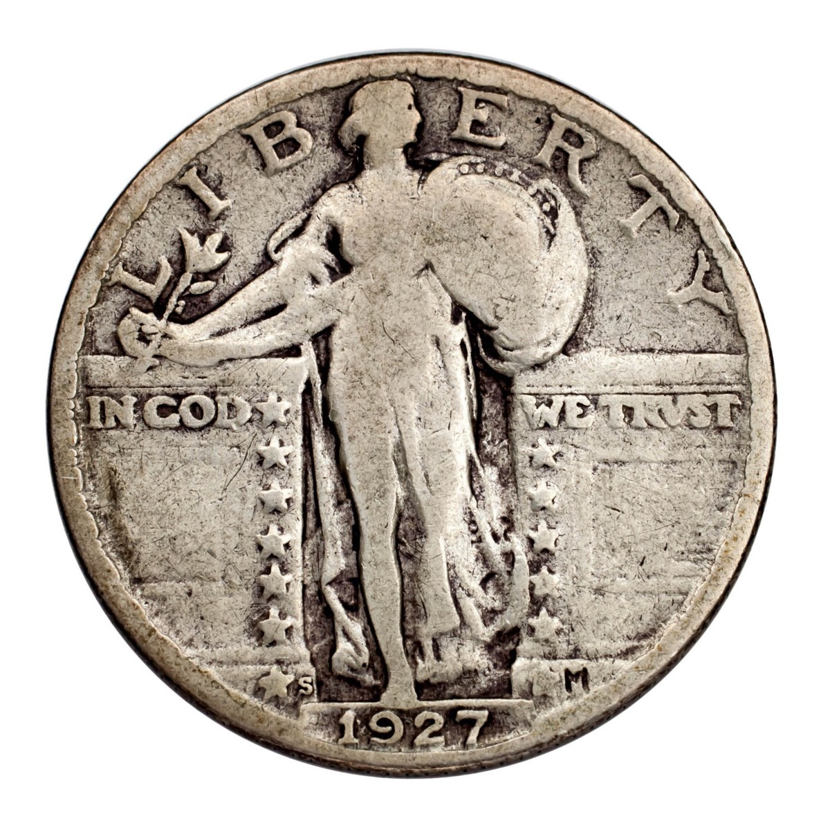1927-S Silver Standing Liberty Quarter 25C (Tres bon etat VG)