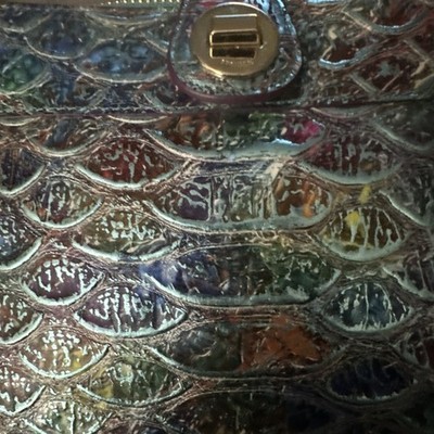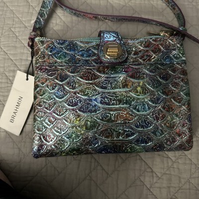 Brahmin Mina Crossbody Frisky Montego Python Leather iridescent Blue BNWT