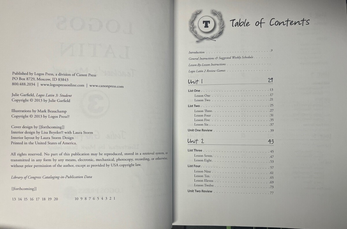 Logos Latin Book 3 Quizzes and Tests/Teacher's Manual-VG
