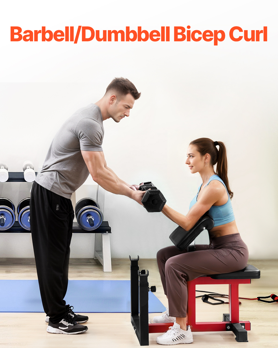 Heavy-Duty Steel Build: Constructed from premium carbon steel, the preacher curl bench provides exceptional stability and durability. Its sturdy design withstands intense workouts, making it a reliable addition to your home or gym setup