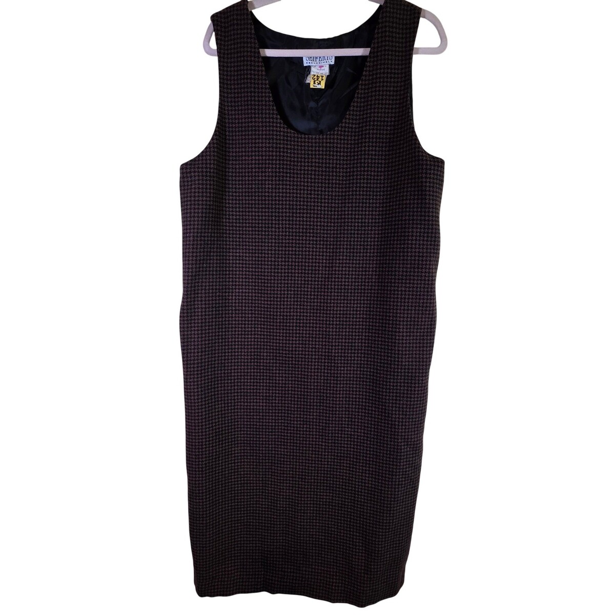 SEIFERTS Womens 12 Brown Houndstooth Wool Shift Dress Vintage 90s Academia Retro