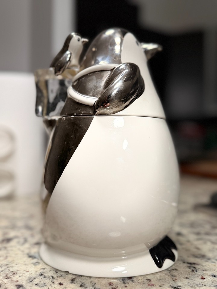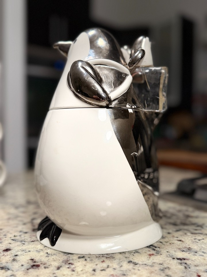 Beutiful Ice Bucket Cocktail Art Deco Bar Shape of a Penguin Glass Porcelain