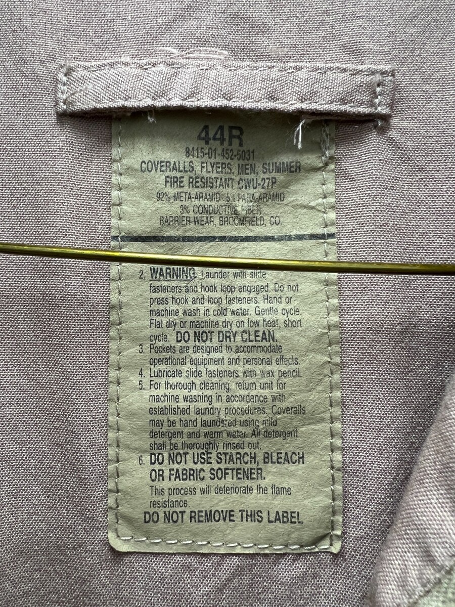 GENUINE US AIR FORCE TAN NOMEX FIRE RESISTANT FLIGHT SUIT CWU-27/P - 44R.