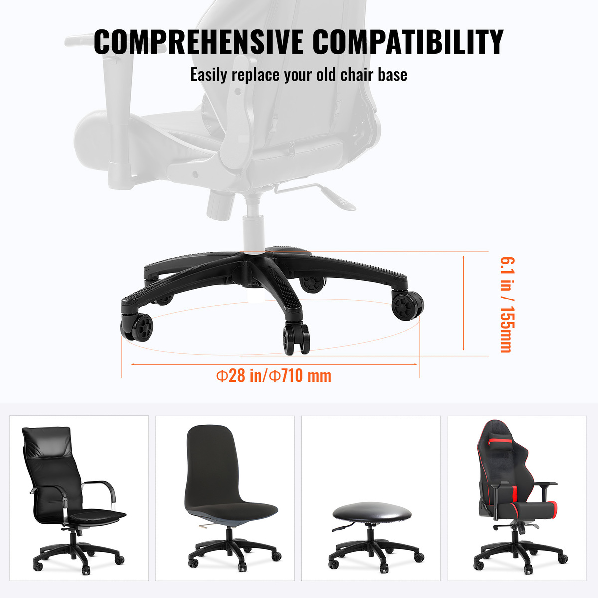 VEVOR 28" Chair Base,2500lbs,5 Casters,Reinforced Legs,Universal,Black