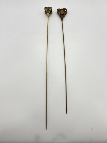 Hatpins were used extensively in days gone by to keep ladies' hats in place. Now, though some still use them, they are often collected as antiques or just a beautiful accent, displayed in special hatpin holders, flower vases, added to plants, or displayed in vintage hat collections. Use your imagination! Some shorten them and put one or two through a jacket lapel or a loose weave scarf.