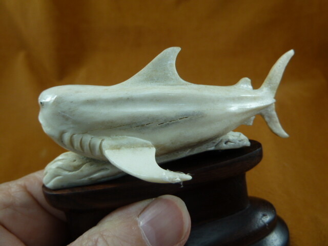 Shark-13 swimming Great White Shark display of shed antler figurine Bali carving