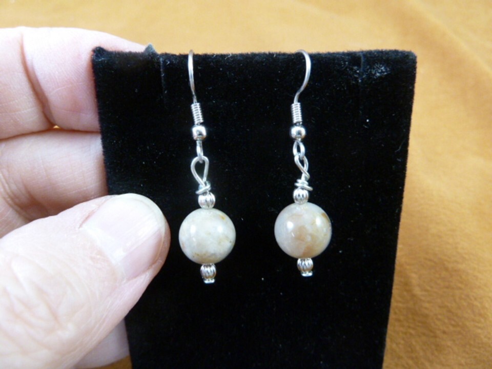 (internal #DP1-9A), This is a beautiful pair of Genuine Dinosaur poop dangle earrings made with one 10mm bead and silver alloy bead accents, on silver alloy hypoallergenic French wires.