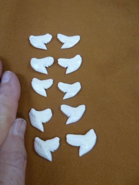 This sale is for a bag of 10 genuine shark t**th, using modern, white, TIGER SHARK T**TH shark t**th from the legal Indonesian fishing industry that uses the whole shark (meat, hide and t**th). (5 rights, 5 lefts)