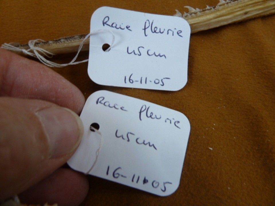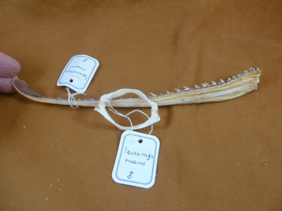 (internal #SJ83-30) This is a CUCKOO RAY (Raja fleurie) shark jaw and tail.