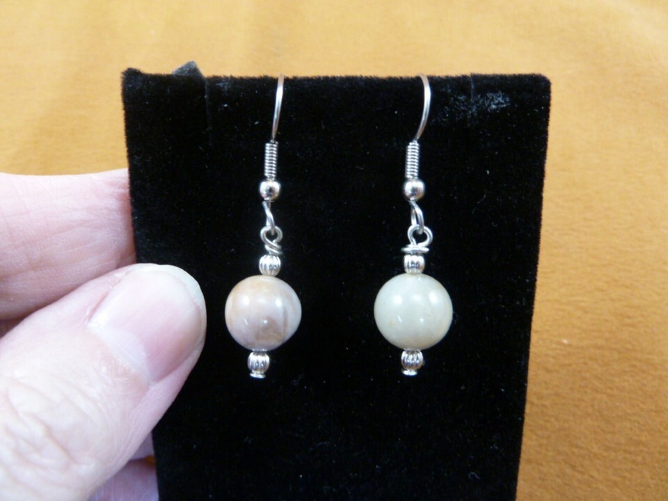 (internal #DP1-9q), This is a beautiful pair of Genuine Dinosaur poop dangle earrings made with one 10 mm bead and silver alloy bead accents, on silver alloy hypoallergenic French wires.