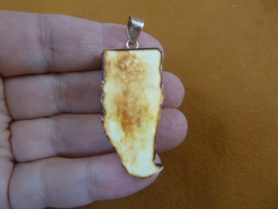 (Internal #J-EAGLE-51) You are bidding on a beautifully hand made Eagle head pendant made of water buffalo organic material (flat or slightly concave and smooth on back); awesome detail, pendant with sterling silver bail loop 5 mm diameter and 3/16" wide loop to attach to a necklace.