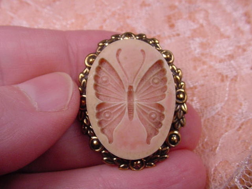 (cs3-5) BUTTERFLY CAMEO white pink Oval Pin and 50 similar items
