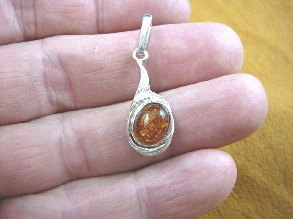 (p18-124) Orange oval AMBER stone Poland .925 Sterling SILVER PENDANT jewlery