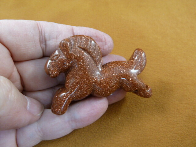 (Y-HOR-RU-708) orange Goldstone HORSE GEMSTONE carving figurine I love Horses