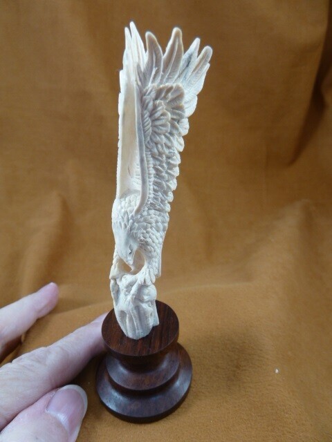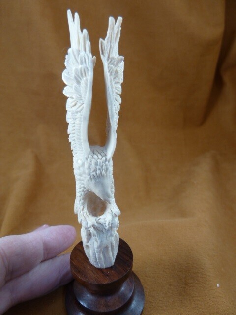 EAGLE-27 Eagle wings out holding fish shed ANTLER figurine Bali detailed carving