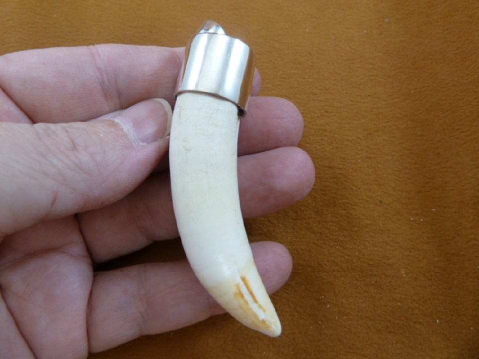 (G967-100) LARGE 3-5/16" GATOR Alligator Tooth Teeth SILVER CAP gators Pendant