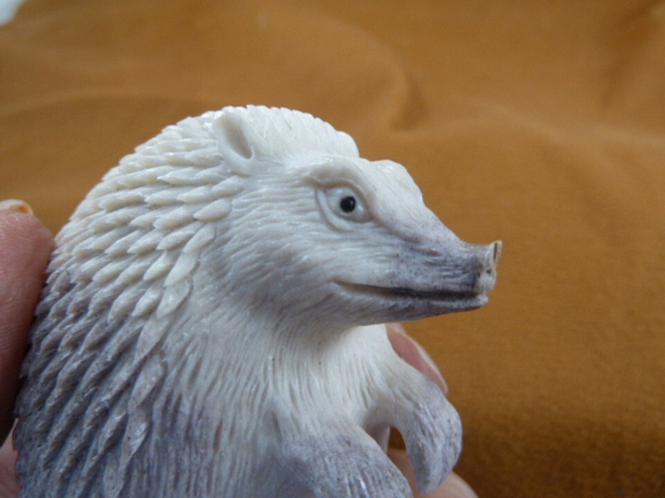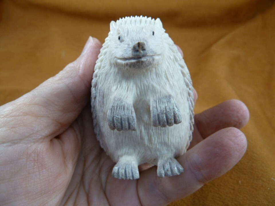 Hed-w11 little sitting Hedgehog shed moose ANTLER figurine Bali detailed carving
