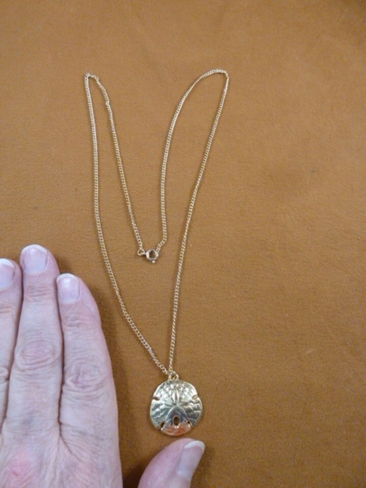 J-SAND-3) 7/8" Sand dollar gold tone pendant on 24" necklace sea shell jewelry
