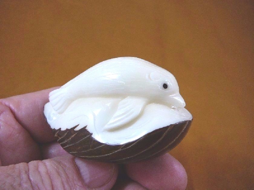 (TNE-SEAL-237-A) little white baby Seal TAGUA NUT palm figurine seals