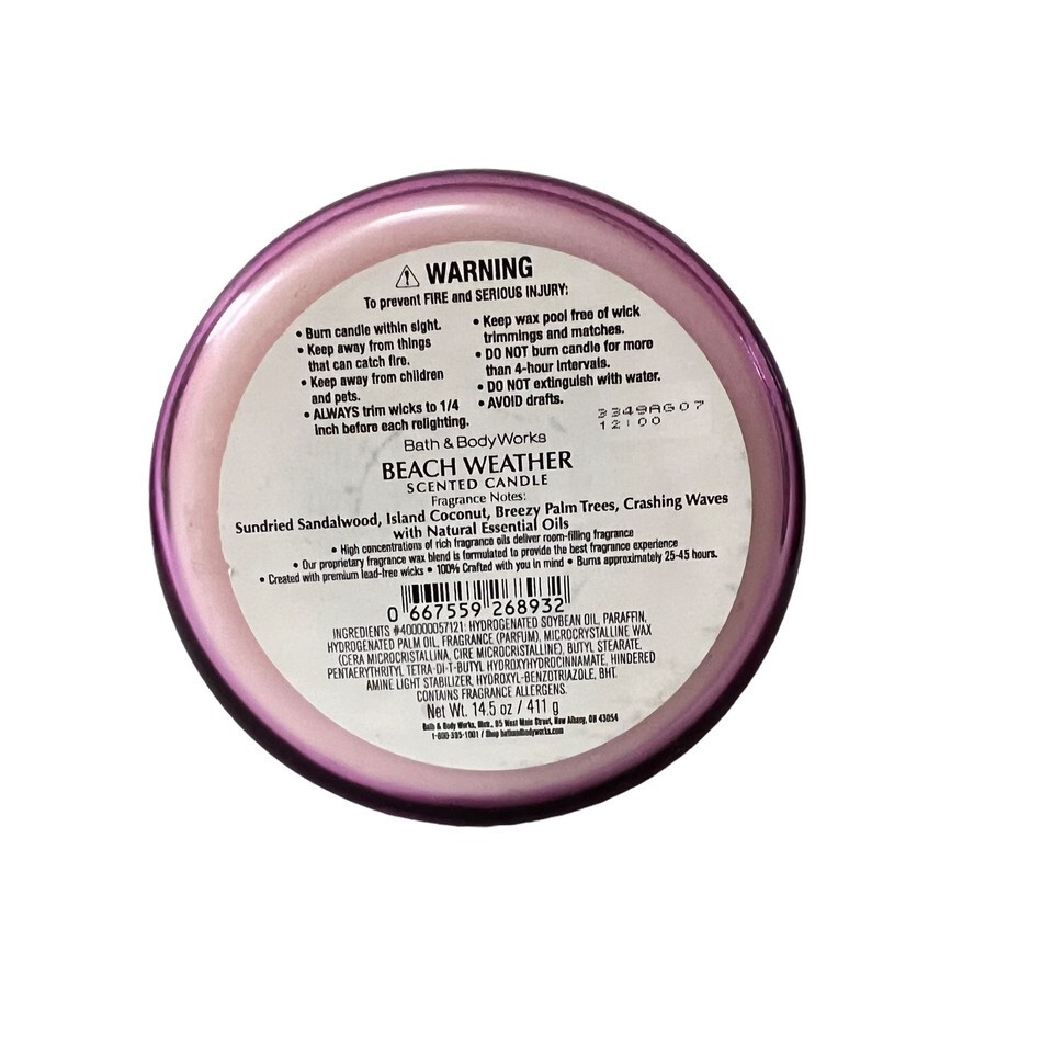 Bath & Body Works Beach Weather Scented 3 Wick Candle 14.5 oz