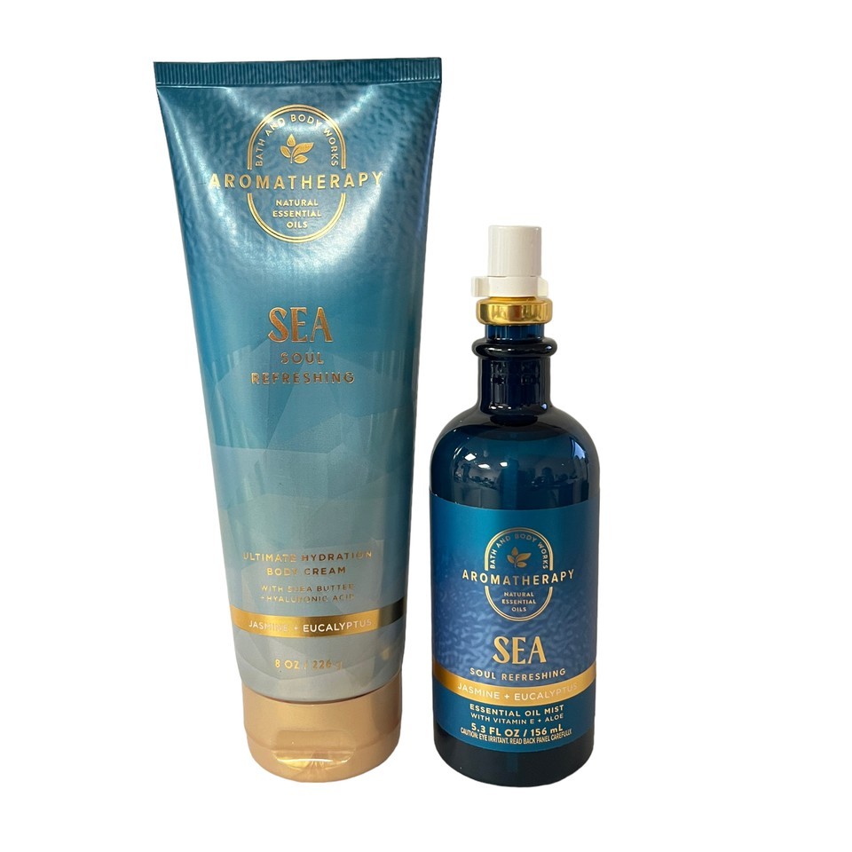 Bath and Body Works Aromatherapy Sea Jasmine Eucalyptus Mist & Body Cream Set