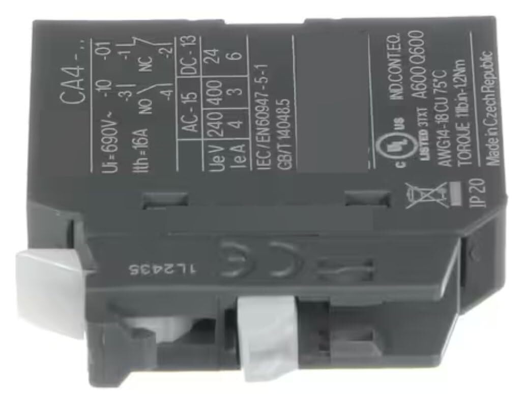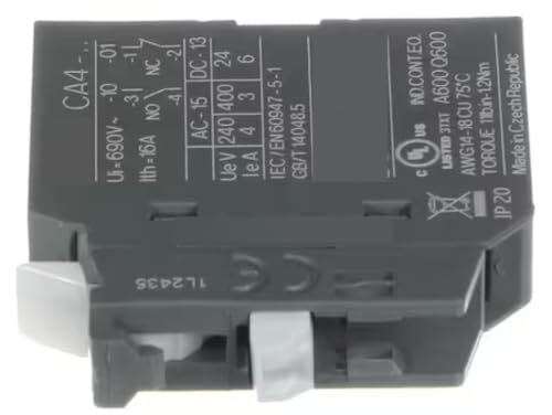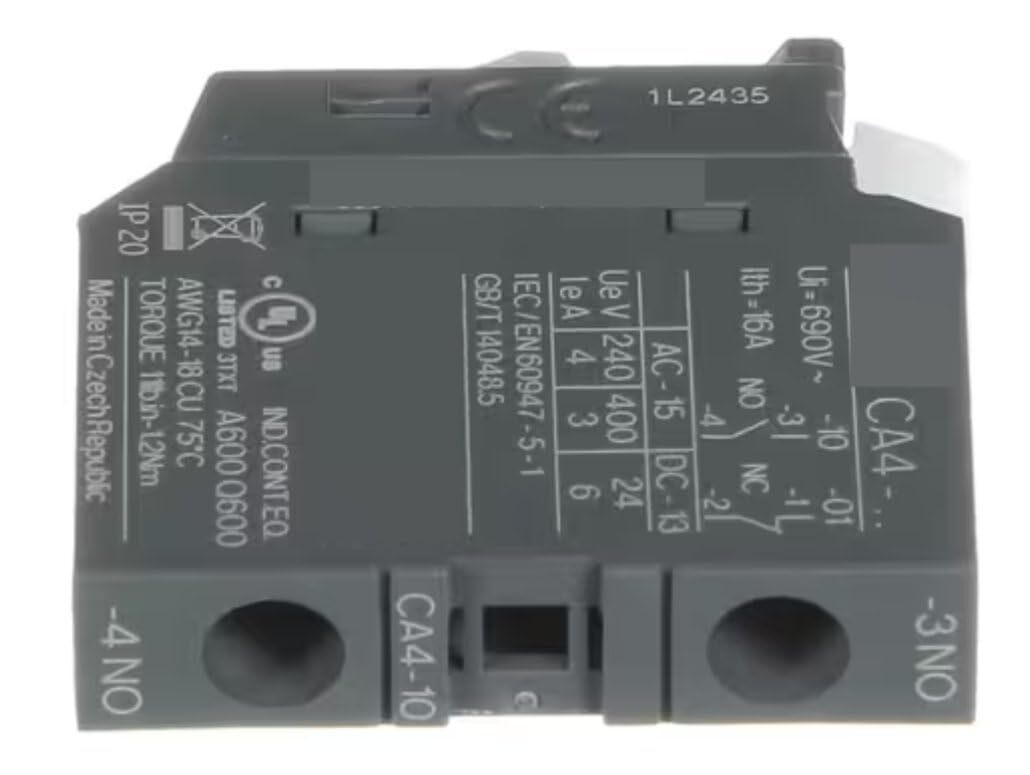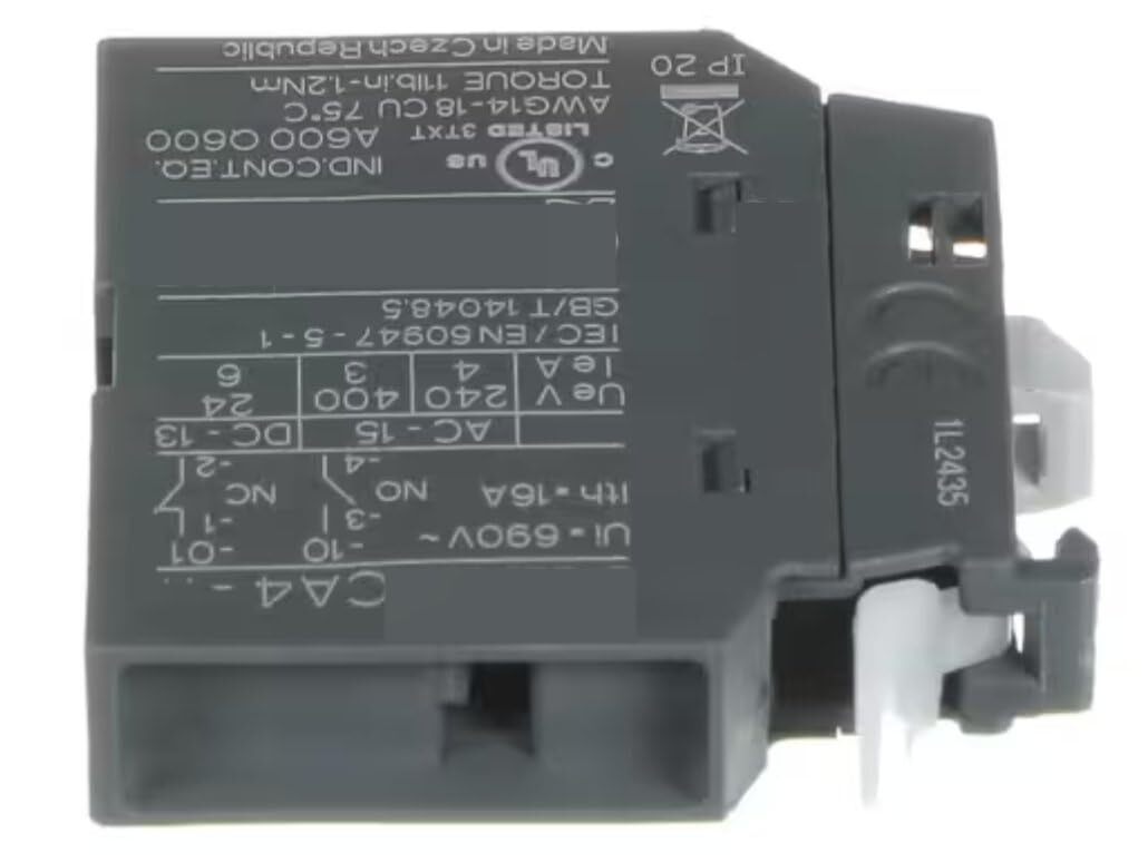 Fits Alliance Laundry Systems CA4-.. Ui 690V~ Ith 16A A600 Q600 3TXT AWG14-18 IP 20 1L2435 Auxiliary Contact, Normally Open, ABB/CNT for BA025E, BA025F, BA030E