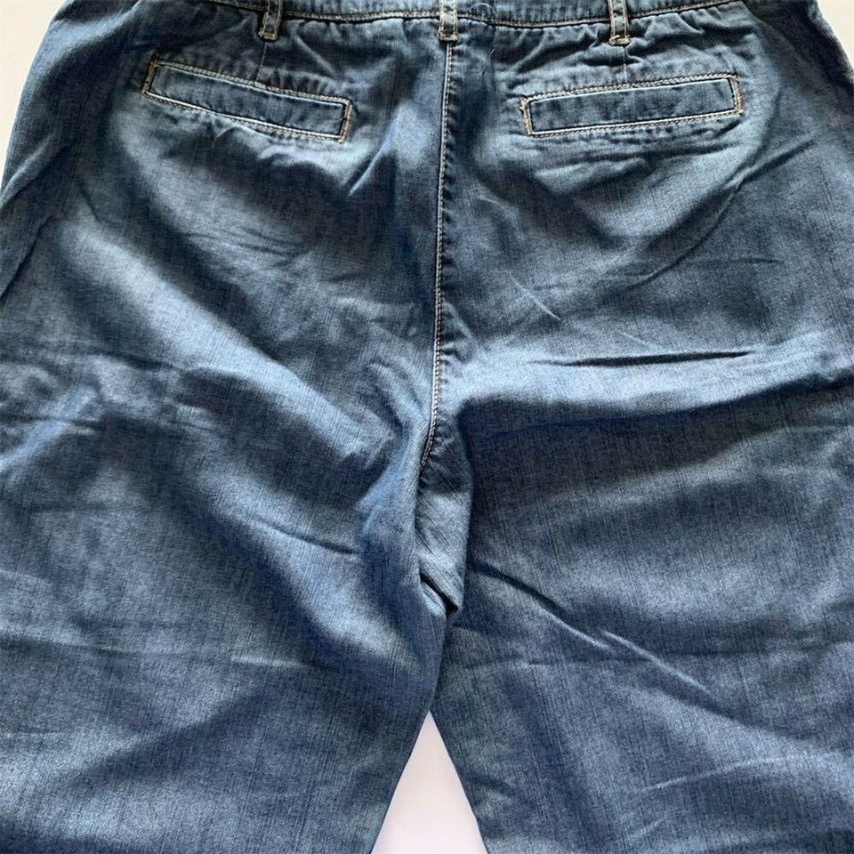 The Nine West jeans are available in women's medium sizes with a relaxed fit and tapered style. They feature a solid blue color with a medium fabric wash. Made from a blend of Tencel Lyocell, cotton, and polyester, these jeans have a mid-rise and a 30-inch inseam. The elastic waistband and two front pockets add comfort and functionality. These jeans are machine washable and are in pre-owned condition.