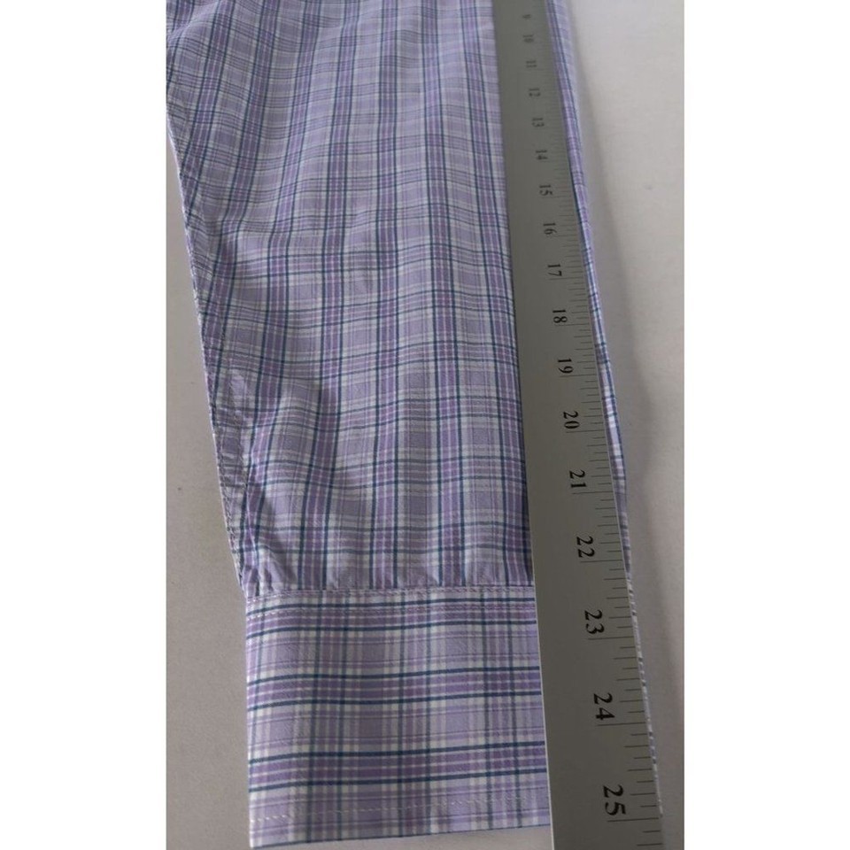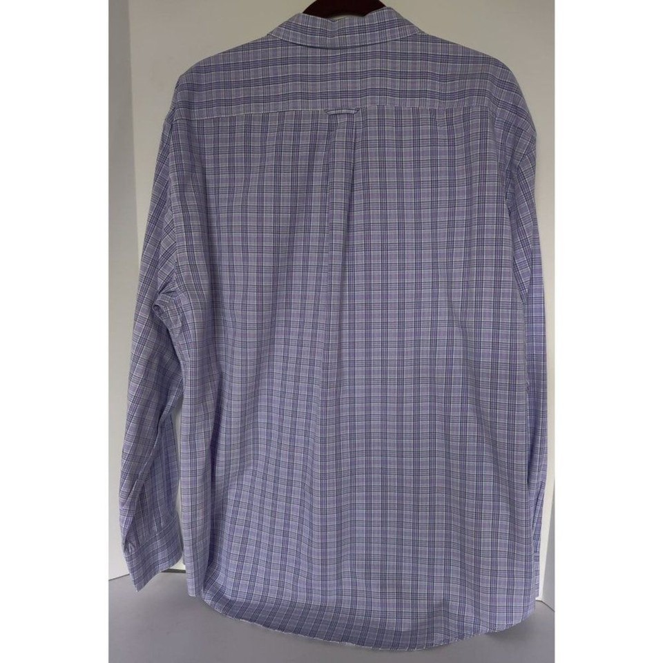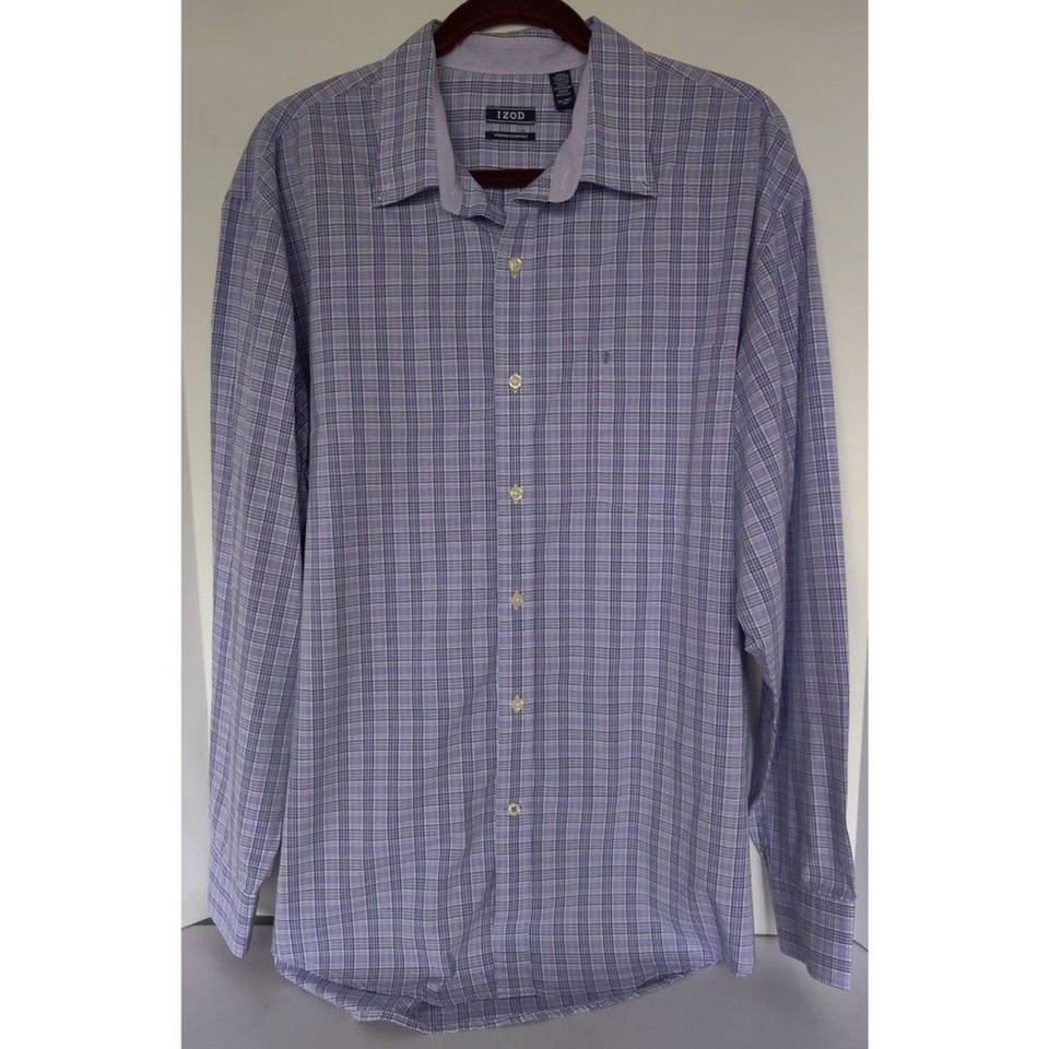 Men's Izod Checker Long Sleeve Collar Purple Shirt Sz, XL/16