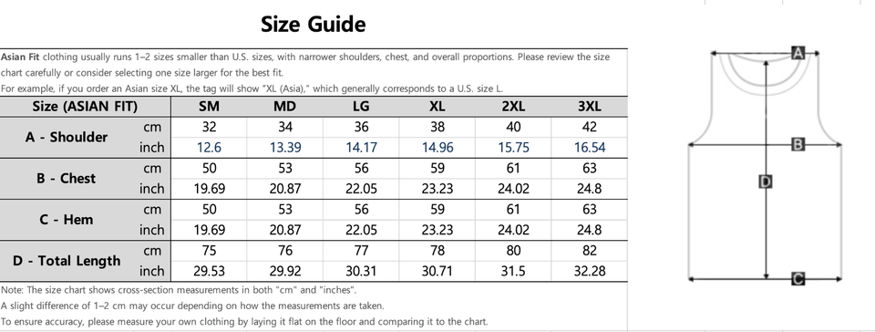 Asian Fit refers to clothing tailored for body shapes commonly found in Asian populations. These items typically run 1-2 sizes smaller than U.S. sizes, with narrower shoulders, chest, and overall proportions. Please check the size chart carefully or consider sizing up for the best fit.