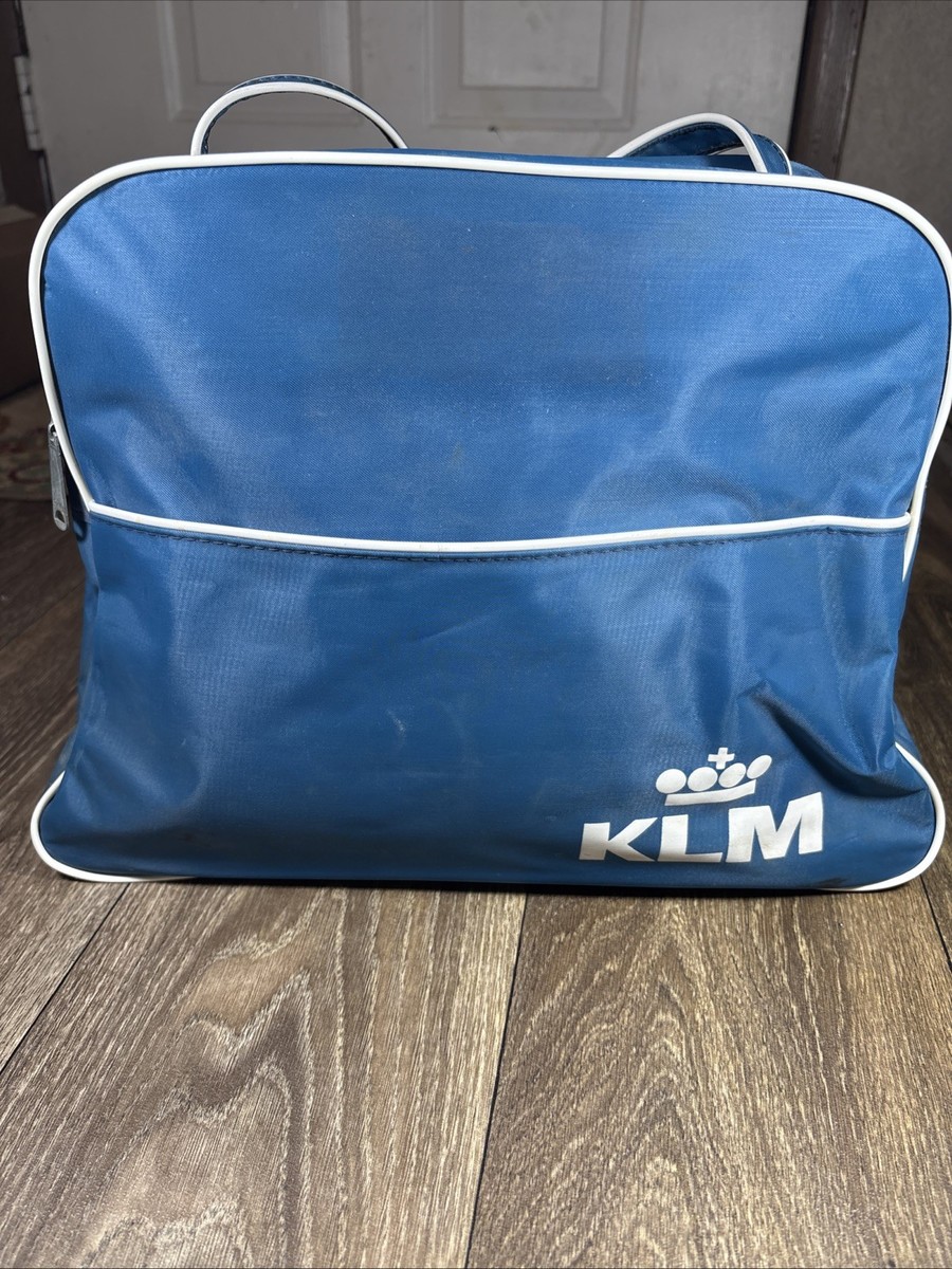 Vintage KLM Travel Bag - Royal Dutch Airlines Shoulder Bag Adjustable Strap Blue