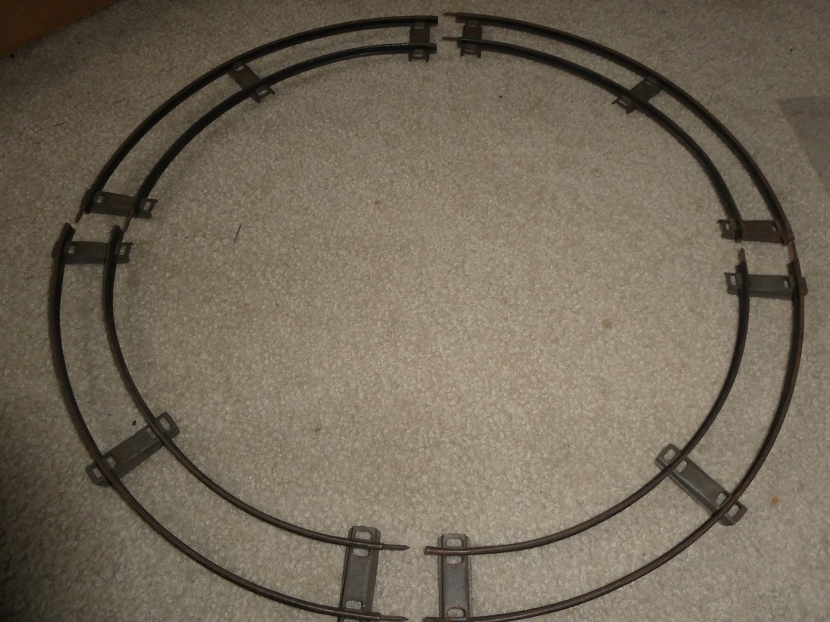 You are bidding on a vintage O scale lot of 4 sections, a full circle, of old track, maybe for windup trains, in the picture. Each section is about 14 inches long. Good shape, paint wear and rusting, could use a cleaning. Zoom in for details.