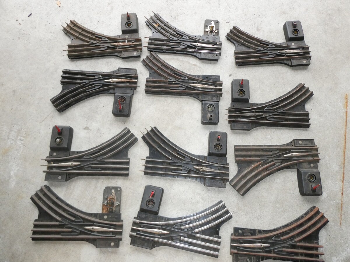 You are bidding on a vintage Lionel O O27 lot of 12 of the 042 track switches in the pictures. Used lot with various degrees or wear, some missing parts, some rusting, unknown working condition, sold for parts or repair, all could use a cleaning. Zoom in for details.