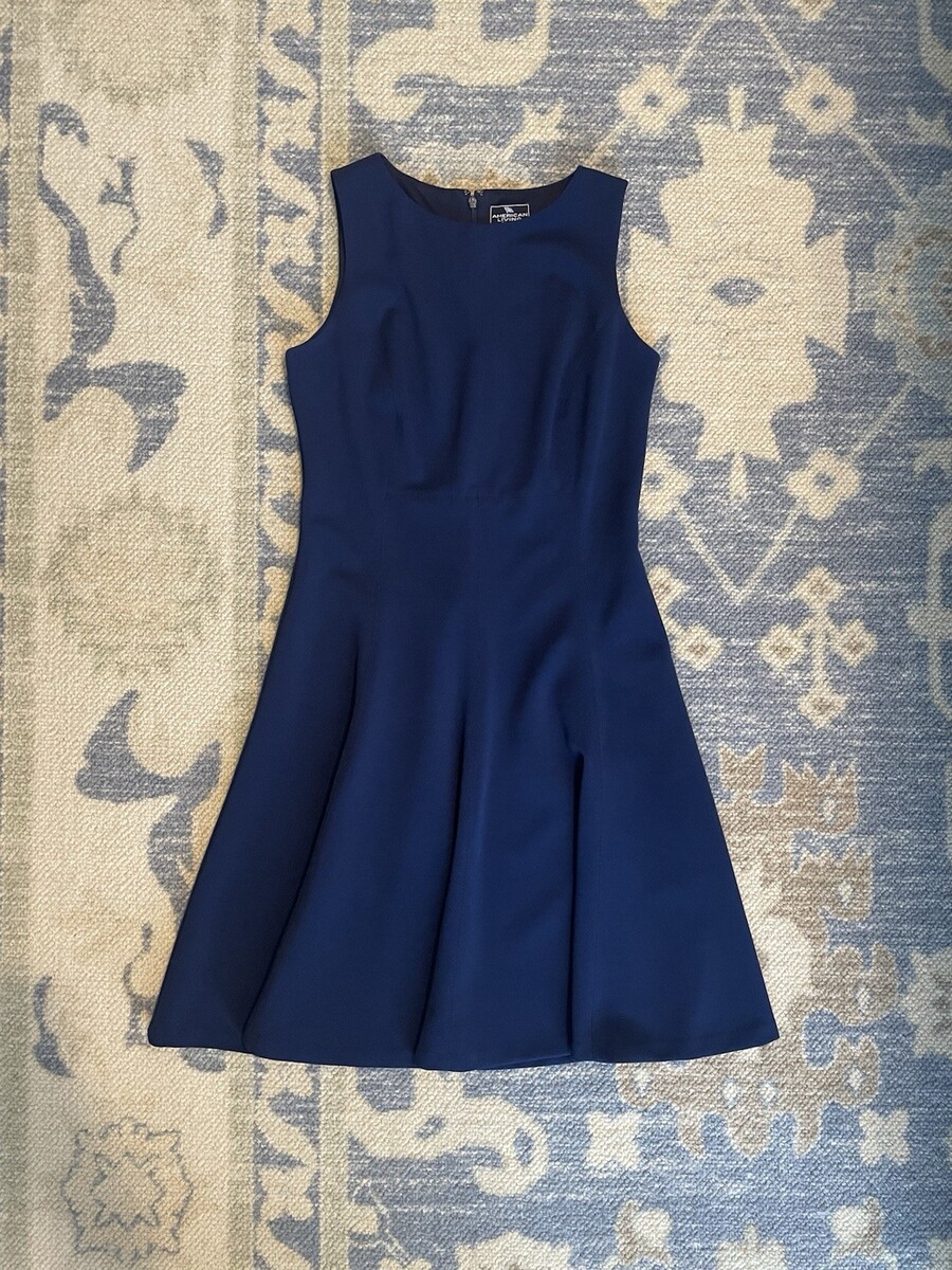This super cute sleeveless dress is form fitting around the bust and flares out along the hips. The stretchy fabric makes it very flattering.