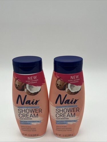(2)NAIR Sensitive Shower Cream Hair Remover with Coconut Oil and Vitamin E,12 oz