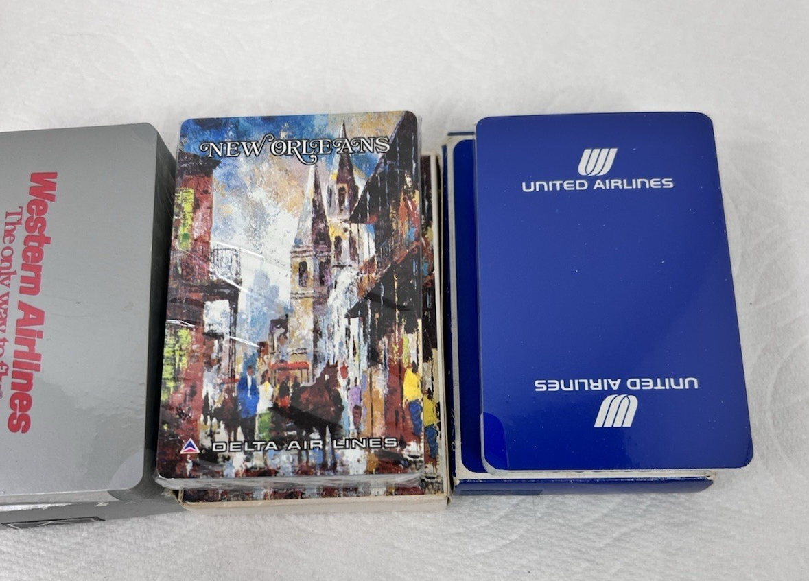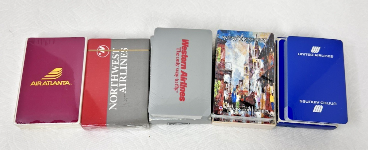 5 Airlines Decks of Cards New Old Stock Never Used Delta United Atlanta NW Weste