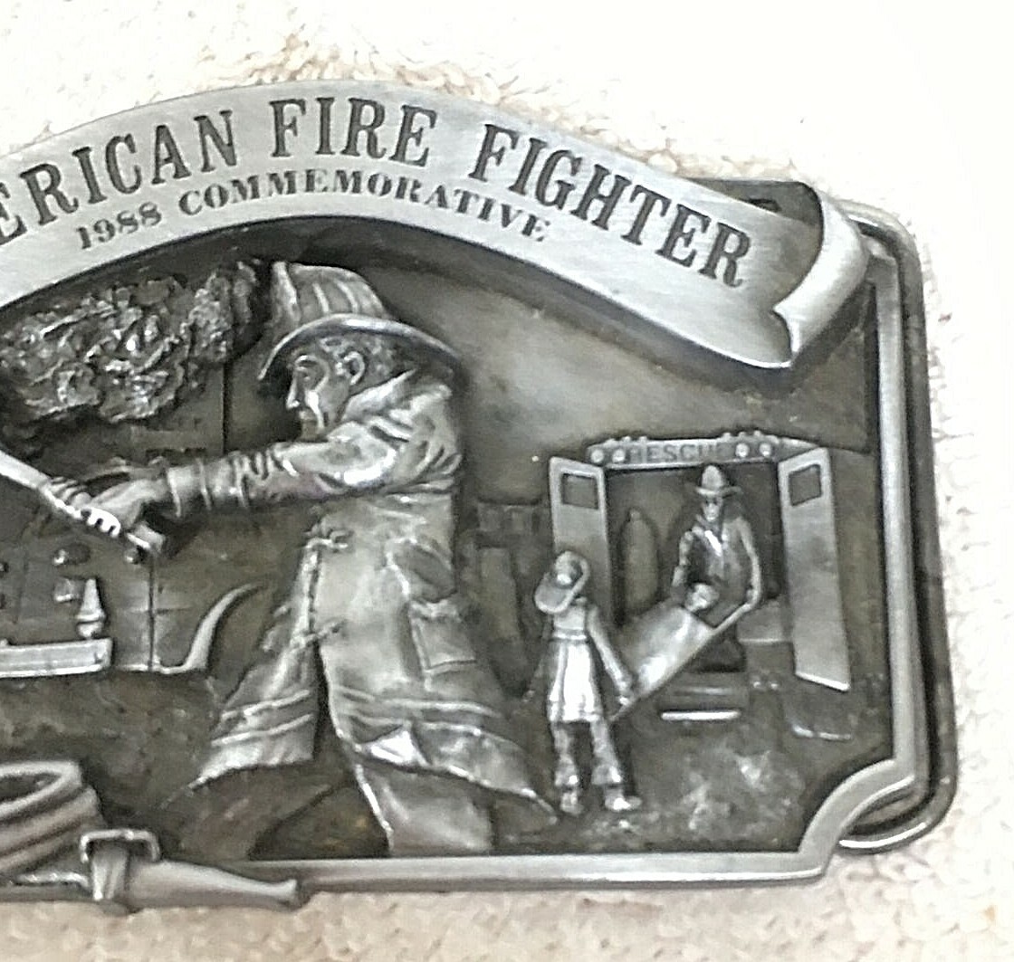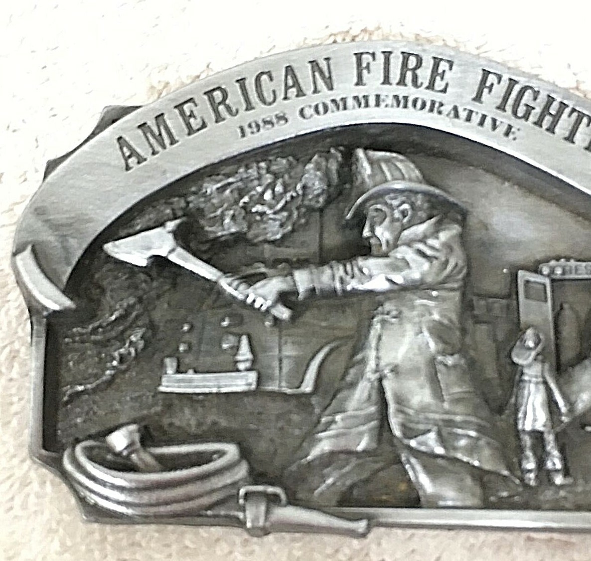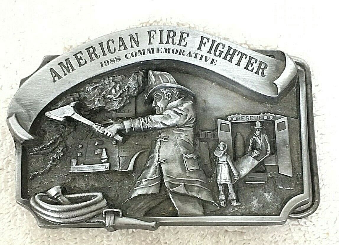 1988 American Firefighter Commemorative Silvertone Belt Buckle 2.5 x 3.5"
