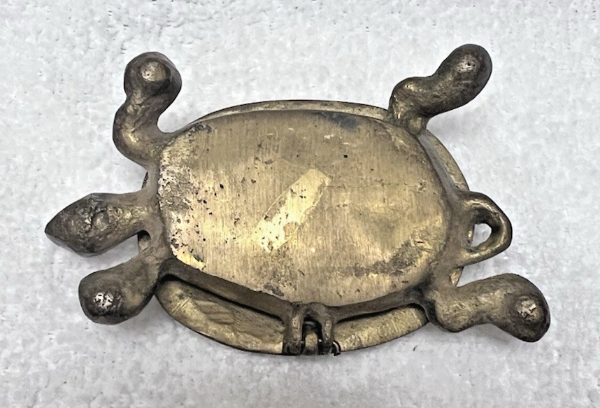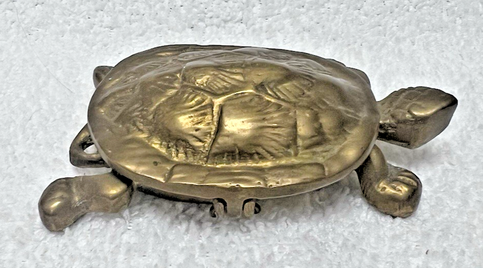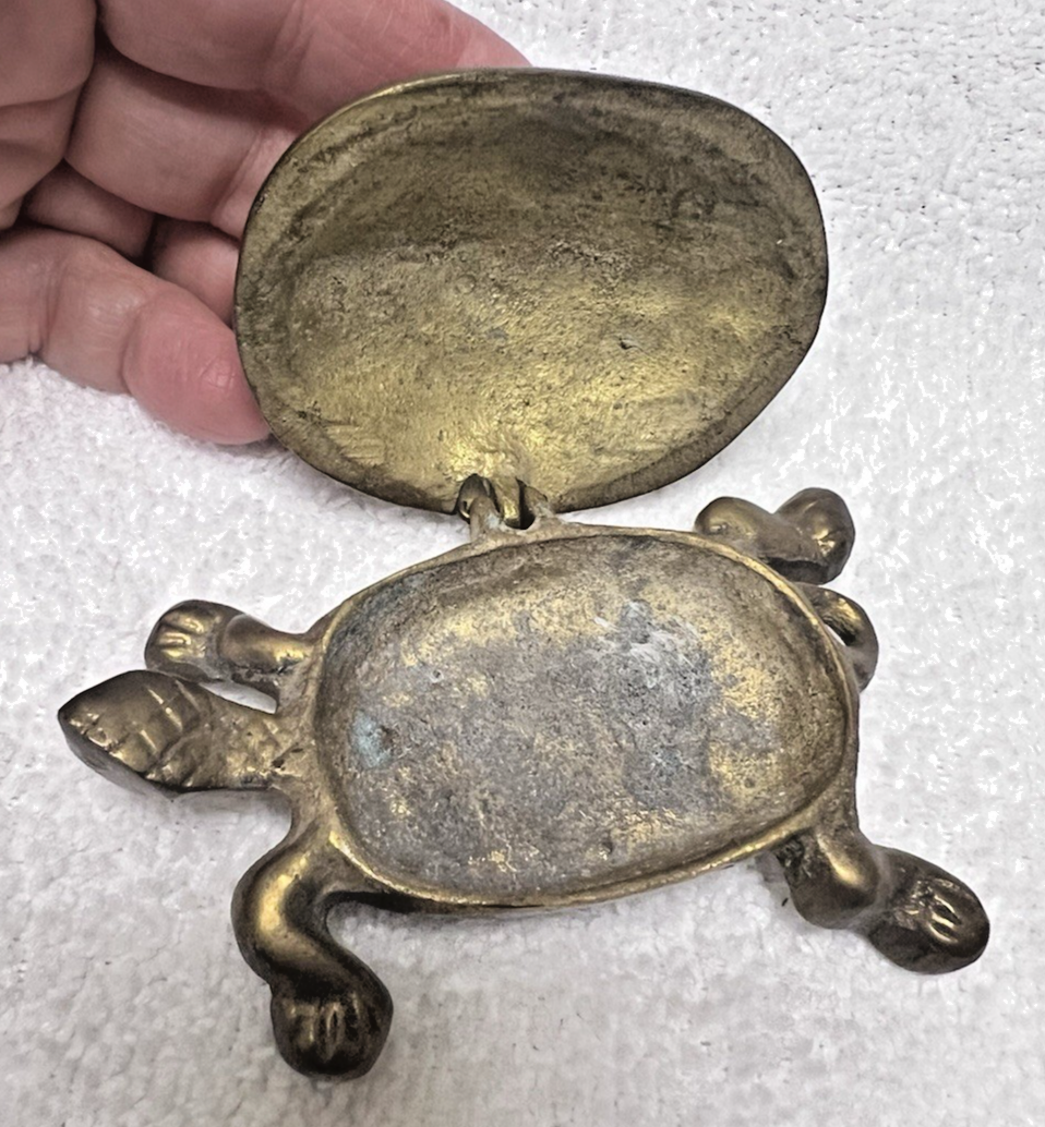 Vintage Solid Brass Turtle Box Hinged w Detailed Shell Back 3.5 x 2 Inch