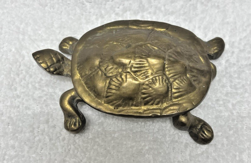 Vintage Solid Brass Turtle Box Hinged w Detailed Shell Back 3.5 x 2 Inch In good shape no chips or breaks