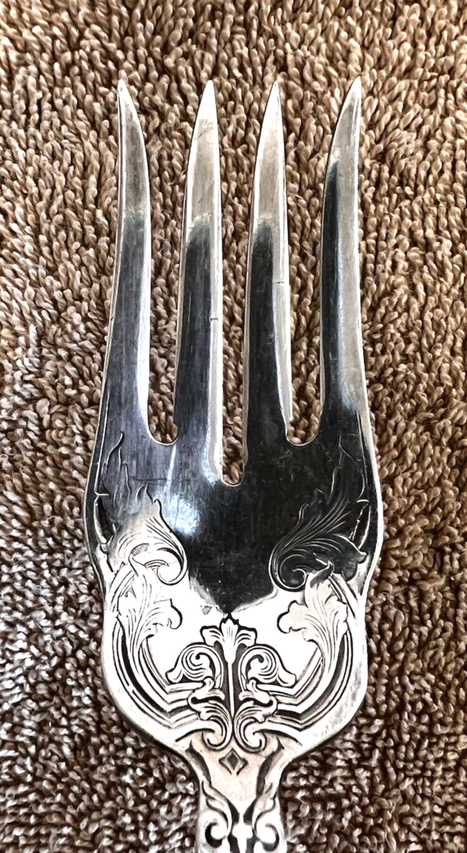 1 Alhambra Silverplate 1907 INTERNATIONAL SILVER Medium Solid Cold Meat Serving Fork 8 1/2 Inches