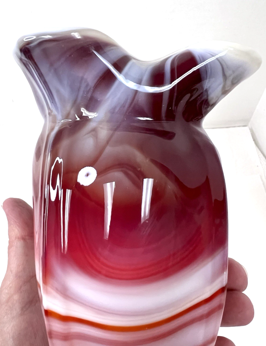 Vintage Imperial Red Slag Glass Footed Vase Pinched Top 9 1/4 inches